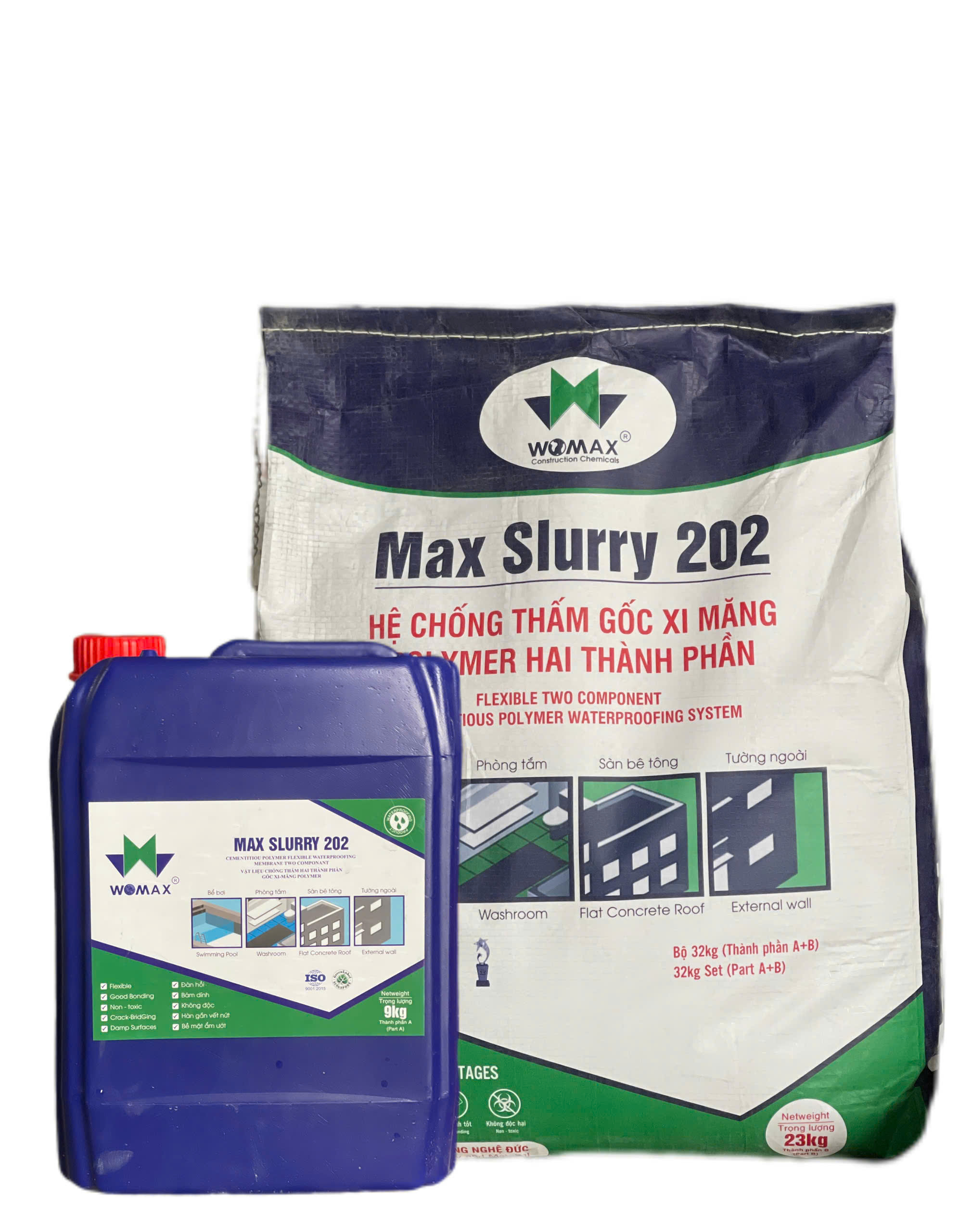 Max slurry 202 là màng chống thấm 2 thành phần không mối nối, quét lỏng được chế tạo dựa trên cơ sở các polyme acrylic chất lượng cao kết hợp xi măng và các loại phụ gia đặc biệt khác. Max slurry 202 có độ kết dính, độ dẻo và độ bền cao, sử dụng chống thấm bên ngoài để bảo vệ cho cấu trúc bê tông và vữa trát.